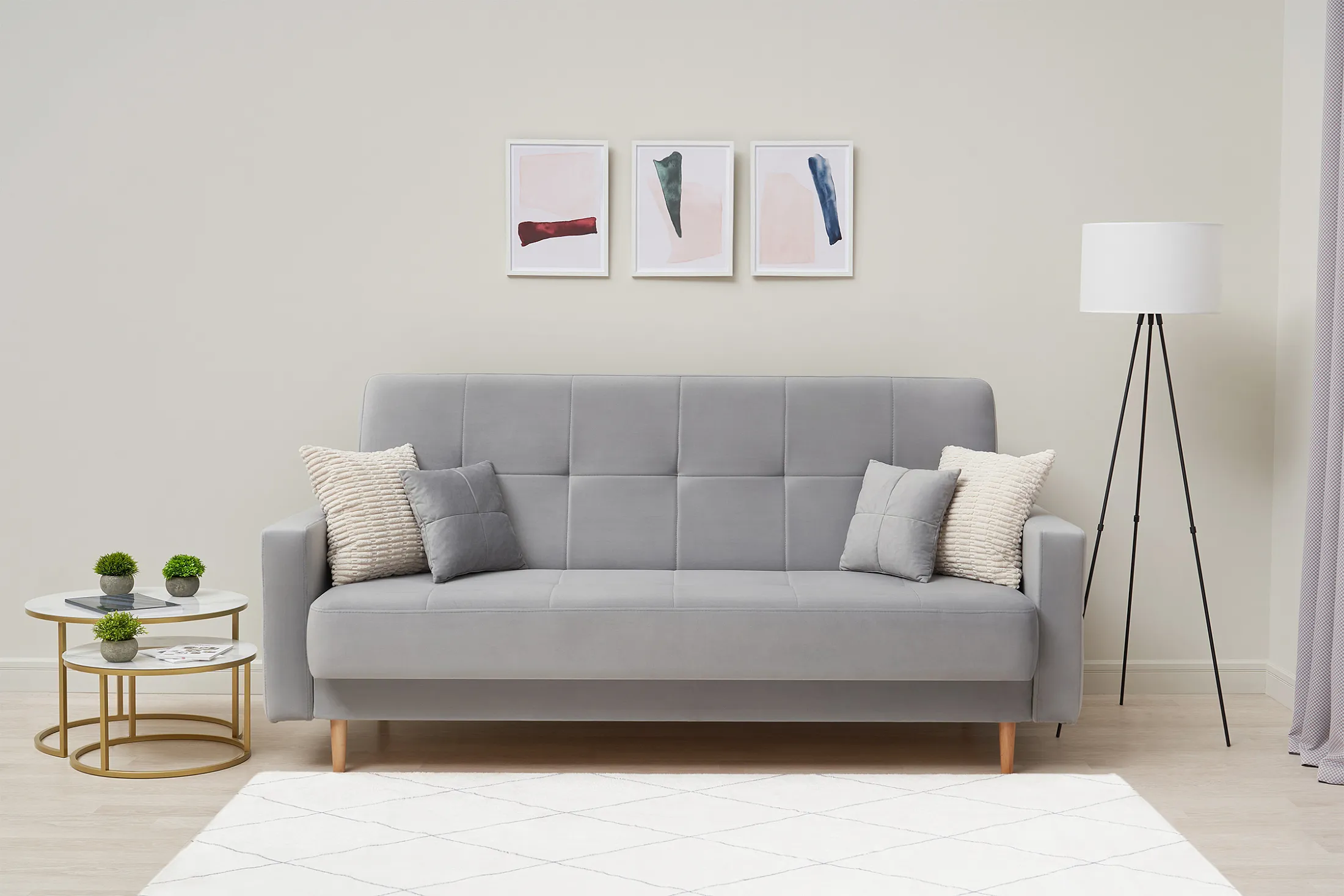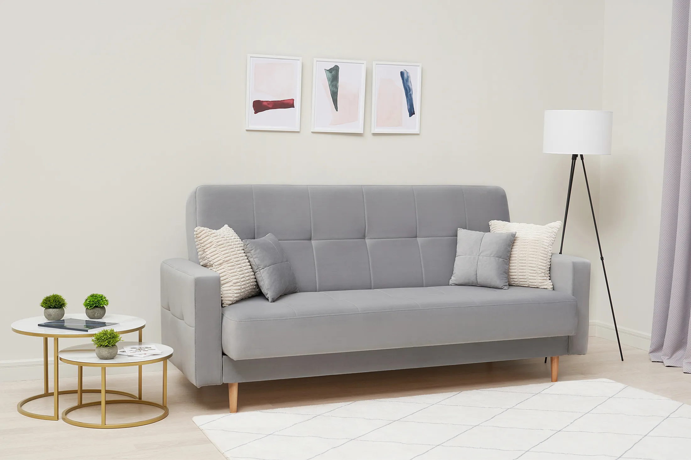 В комплекте — две декоративные подушки, добавляющие уюта и завершающие образ.