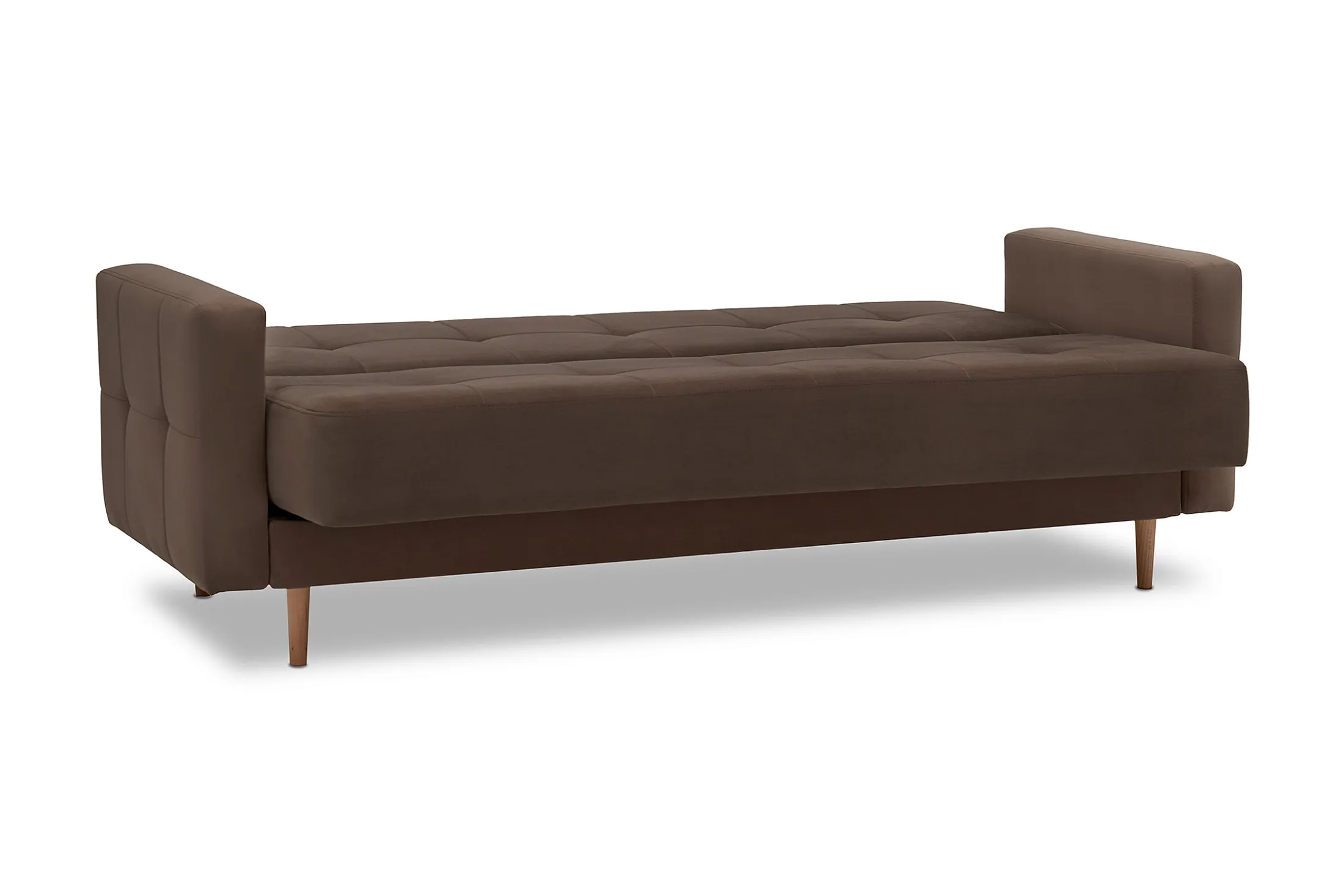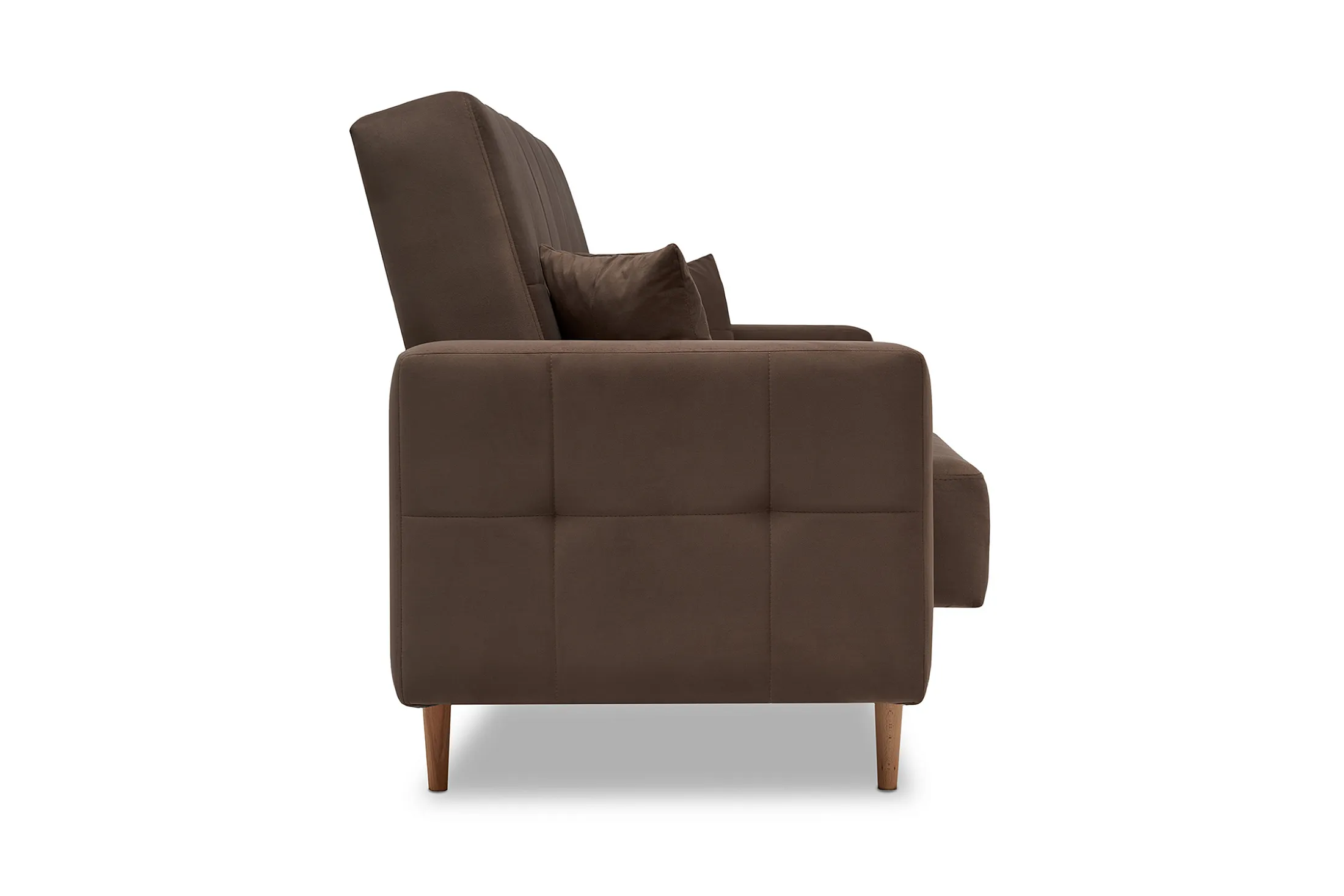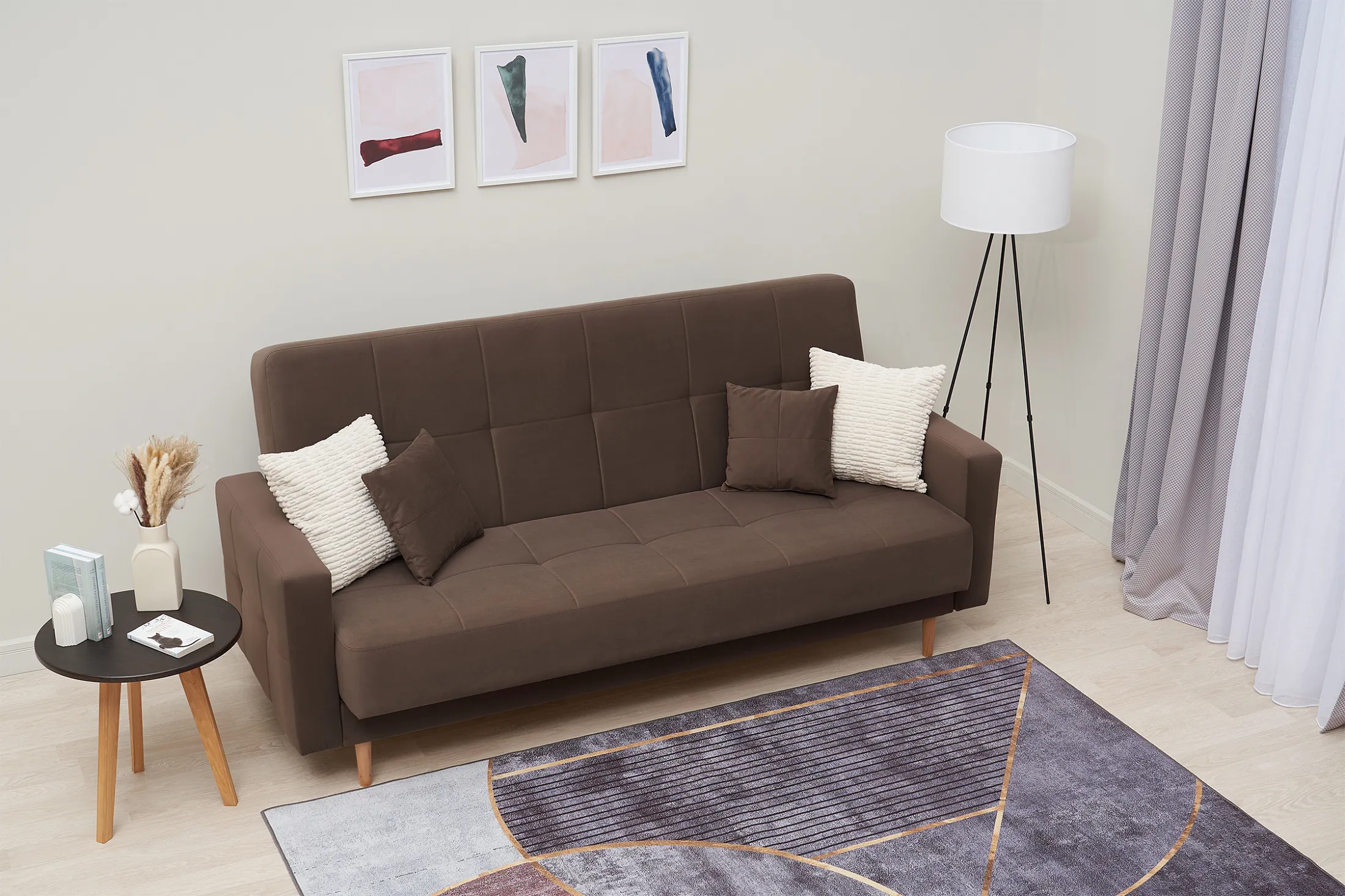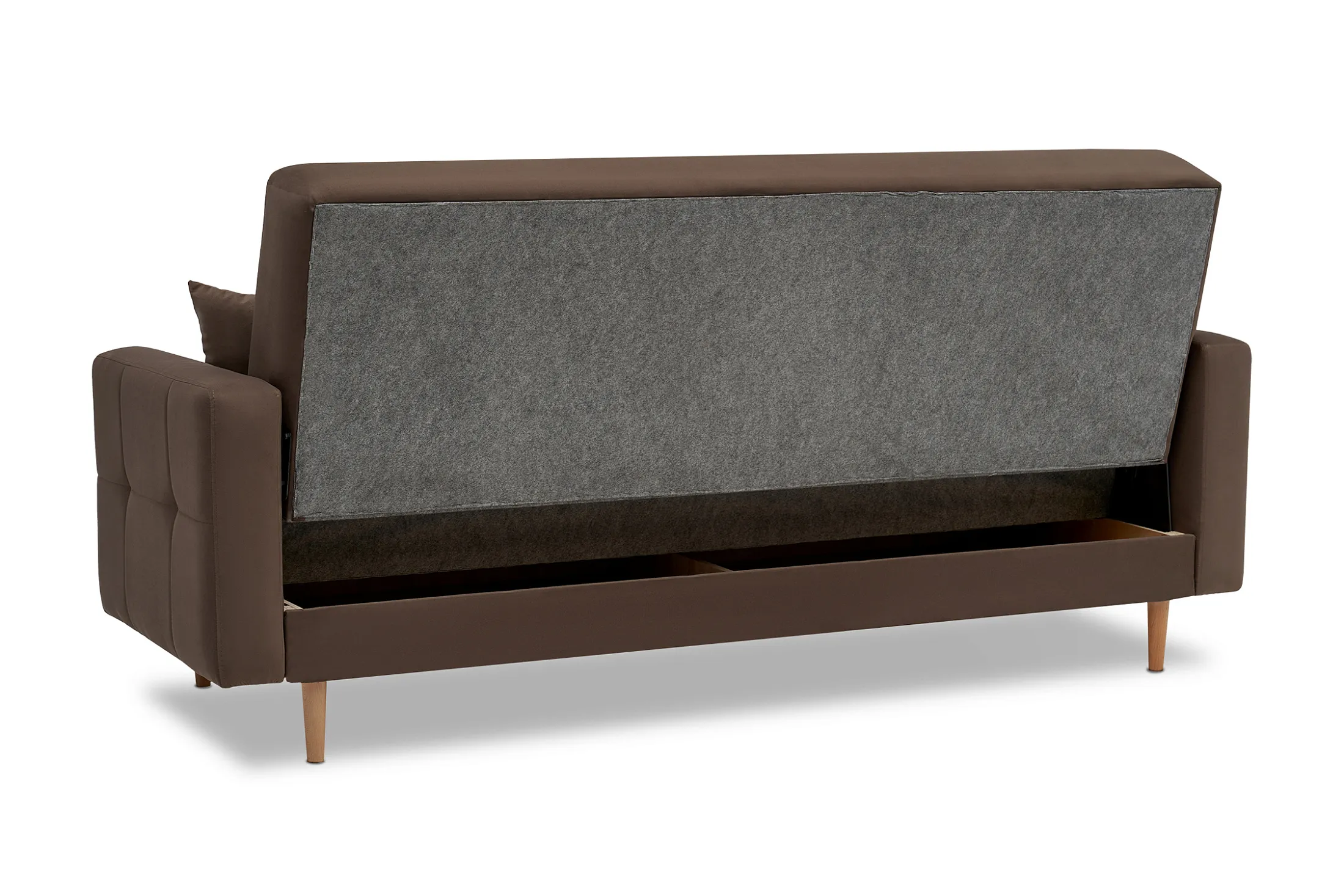- Удобство трансформации. Механизм «книжка» позволяет быстро превратить диван в полноценное спальное место: достаточно поднять сиденье до щелчка и опустить спинку.