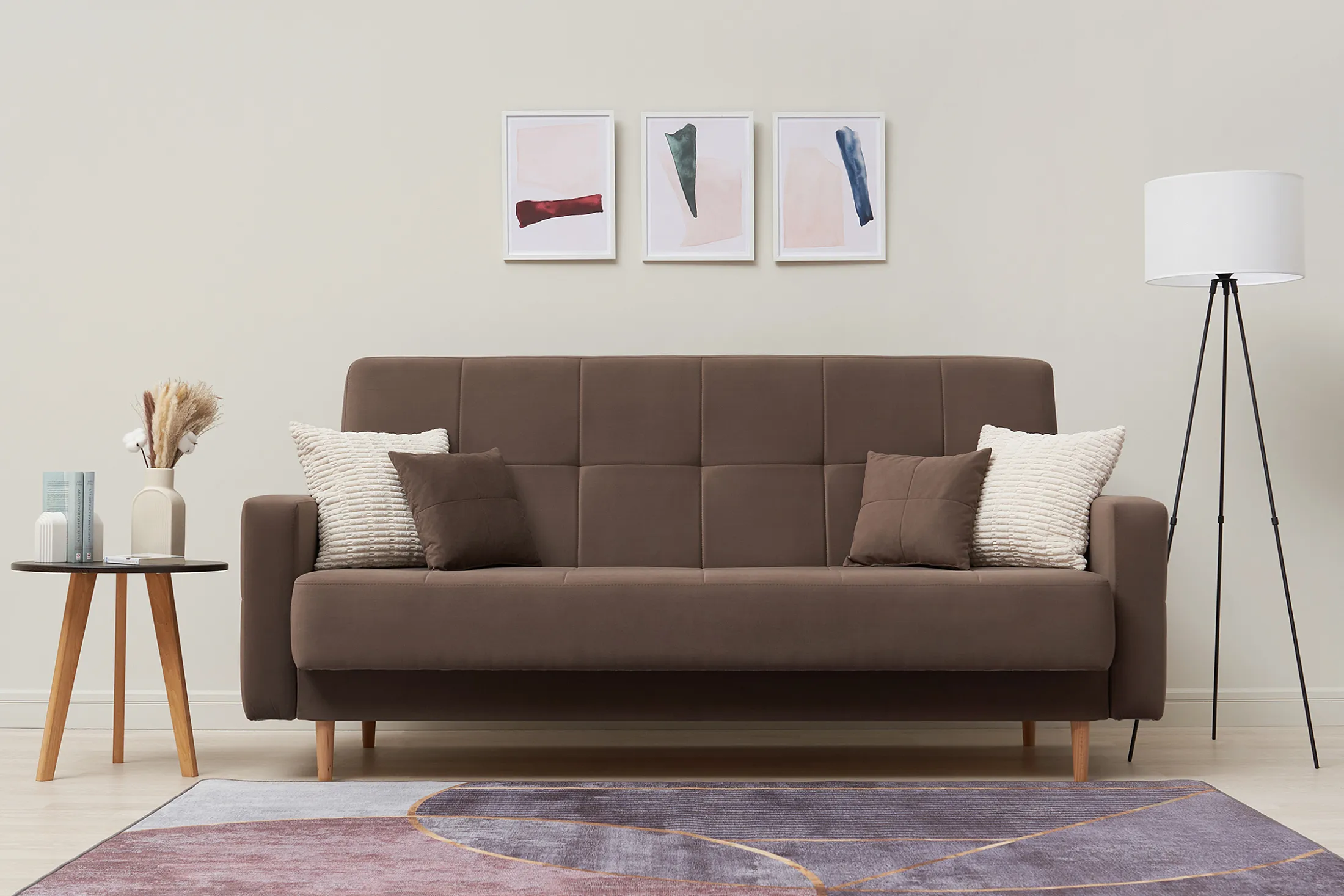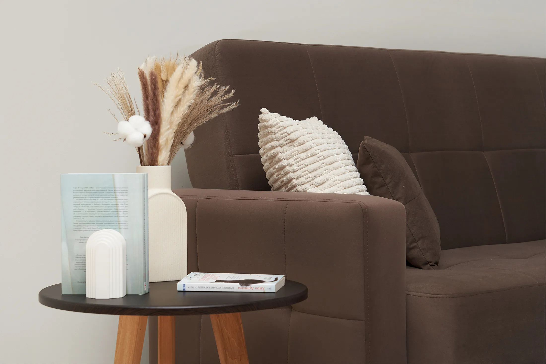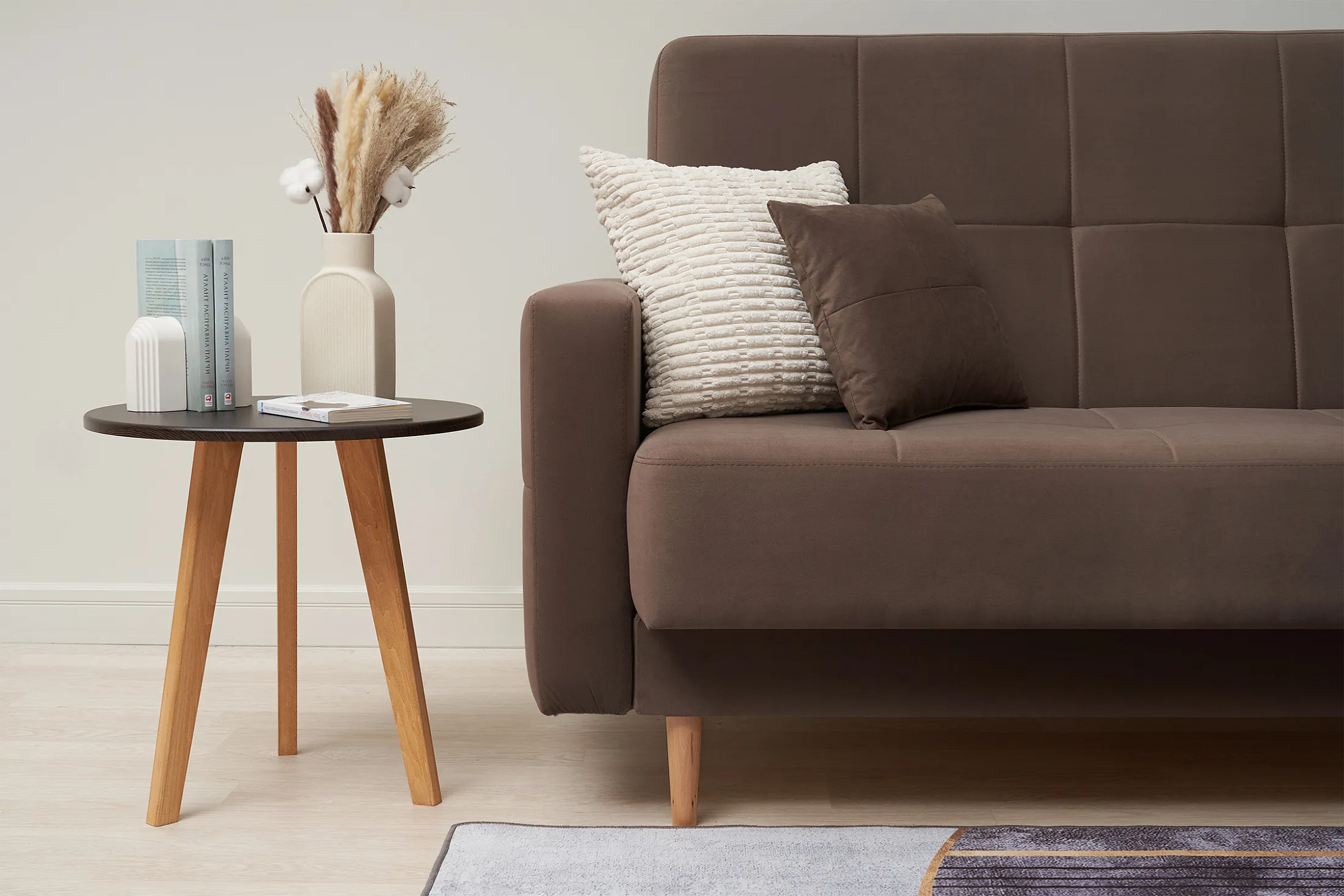В комплекте — две декоративные подушки, добавляющие уюта и завершающие образ.